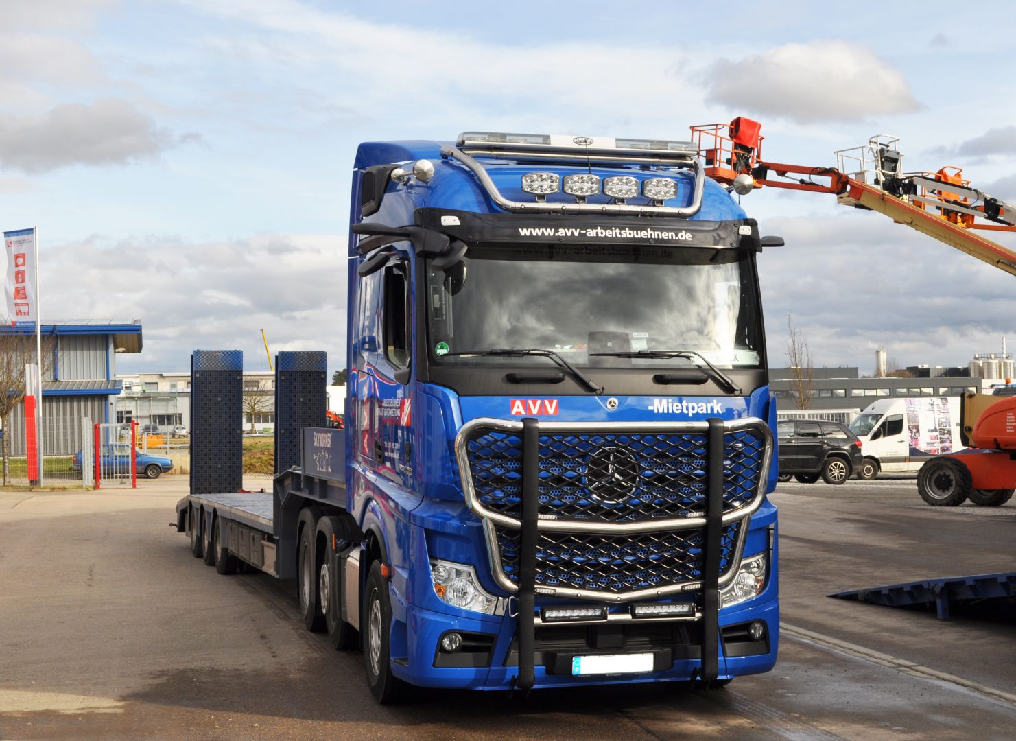 Endlich ist es soweit und der neue Transport-LKW des AVV-Mietparks ist da! Ab jetzt wird auch der neue Mercedes Benz Actros 2563 - LKW fleißig Arbeitsbühnen bei unsern Kunden anliefern und wieder abholen.