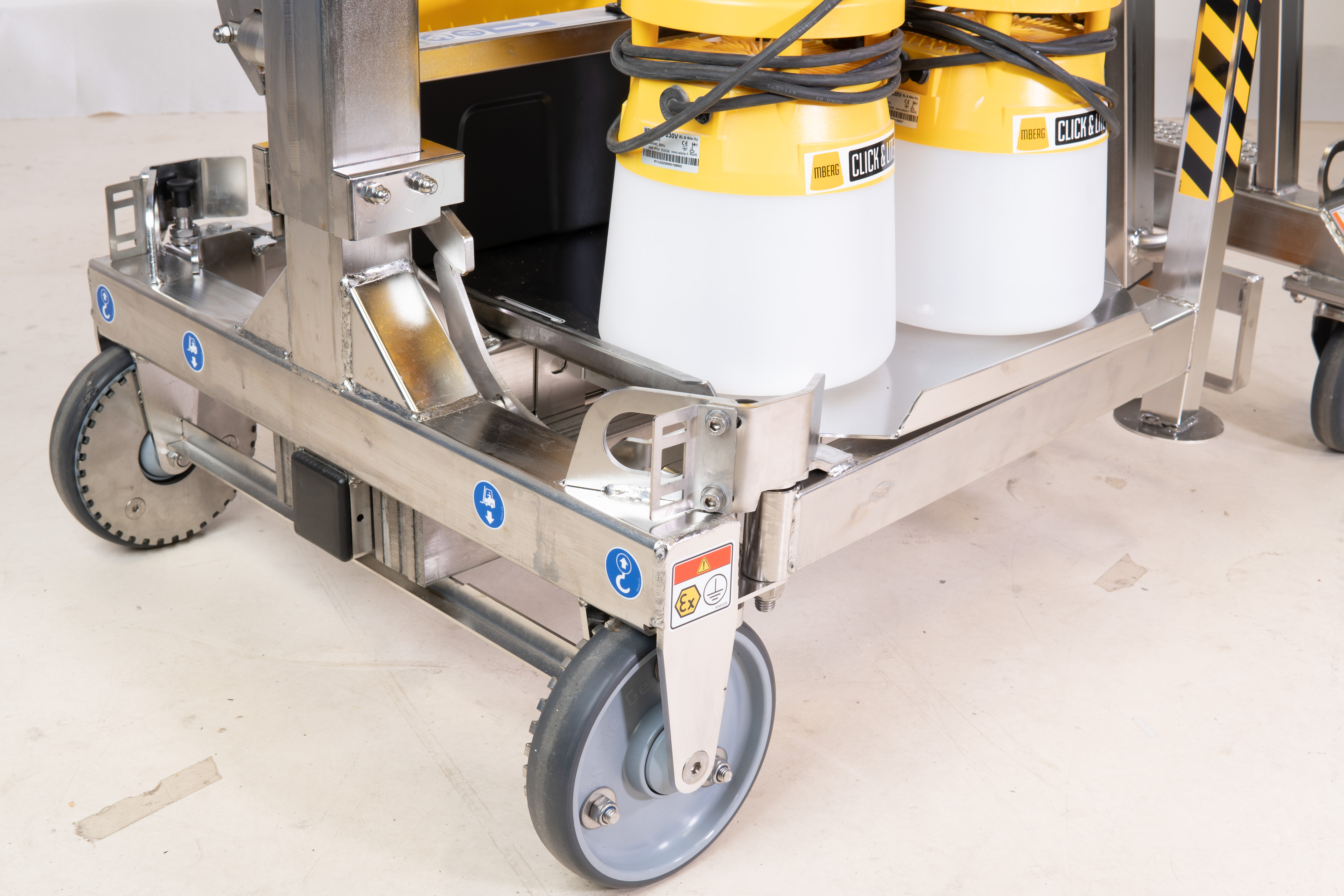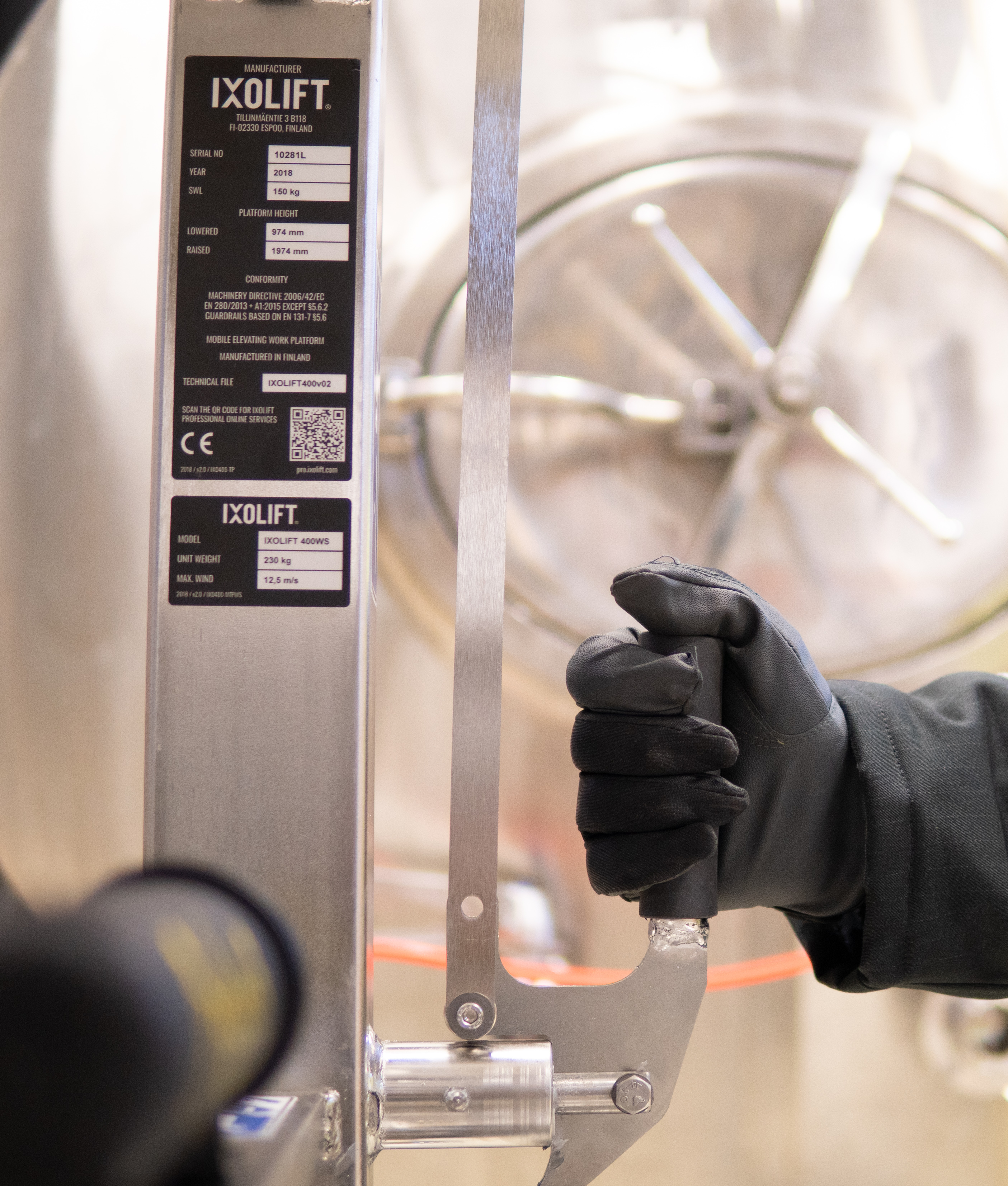 Dank der automatisch blockierenden Anti-Rutsch Bremse, den seitlichen Handläufen und den sich nach innen öffnenden Saloontüren ist das Arbeiten auf dem Ixolift außerdem sehr sicher. Hinzukommend macht das kompakte Design das Passieren von genormten Türen, Aufzügen und schmalen Gängen problemlos möglich.